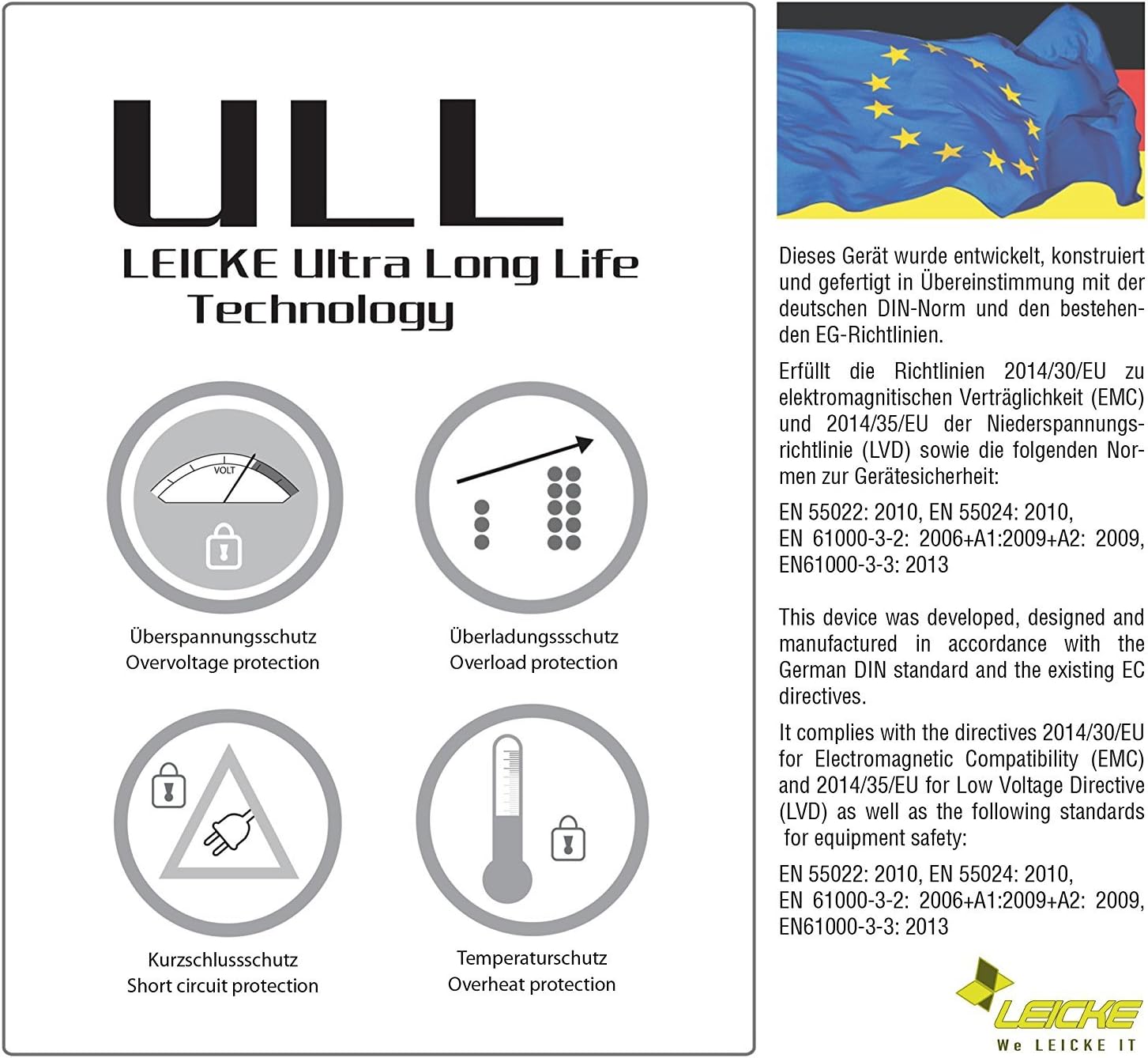 Image: Diagram showing the LEICKE ULL Technology, highlighting its overvoltage, overload, short circuit, and overheat protection features.
