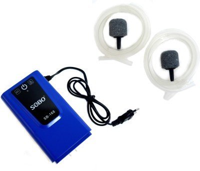 Image: The SOBO SB-168 air pump shown with two air stones and connecting air tubing, illustrating a typical setup.