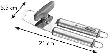Image showing the Tescoma GRANDCHEF Can Opener, highlighting its approximate dimensions: 21 cm (8.27 inches) in length and 5.5 cm (2.17 inches) in width.