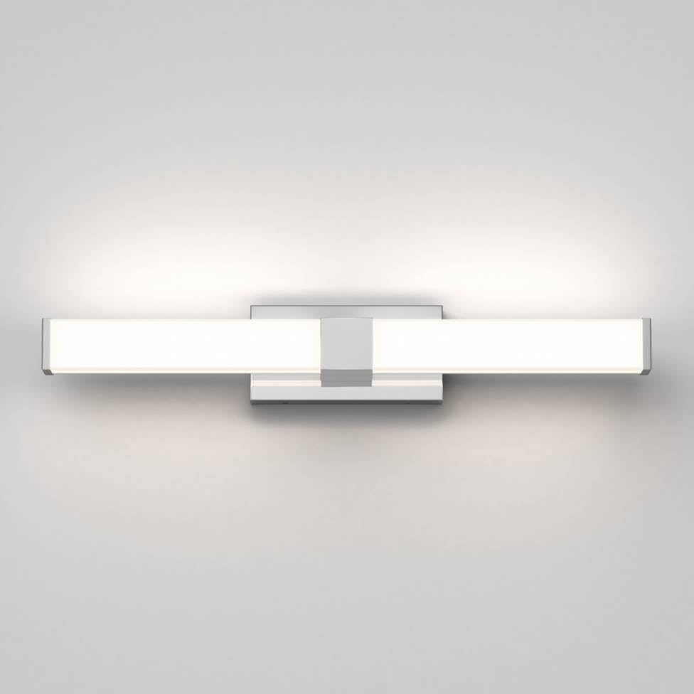 The Artika Vester LED Vanity Light (model VAN-VE-CR) is a modern, chrome-finished lighting fixture designed for indoor damp locations, such as bathrooms. It features integrated LED technology, offering 1900 lumens of bright, 3000K warm white light with a long lifespan of 50,000 hours. This fixture is dimmable and controlled via a remote.
