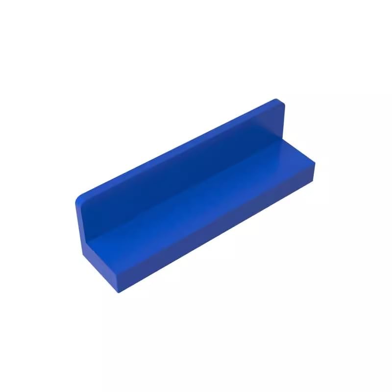 Image 1.1: A single blue Gobricks GDS-861 Panel 1 x 4 x 1 with Rounded Corners (Thin Wall) building block, shown from an angled perspective, highlighting its L-shaped profile and smooth, rounded edge.