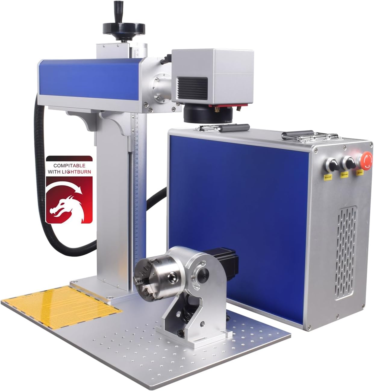 Figure 1: Ovsuqu JPT MOPA 200W Fiber Laser Engraving and Cutting Machine with rotary axis.