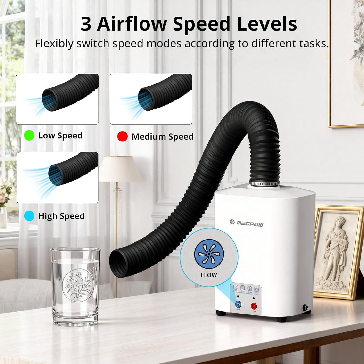 The Mecpow P50 Fume Extractor is designed to provide a cleaner and safer working environment by effectively removing smoke, dust, and harmful particles generated during various processes, such as laser engraving and soldering. This manual provides essential information for the proper setup, operation, and maintenance of your P50 Fume Extractor.